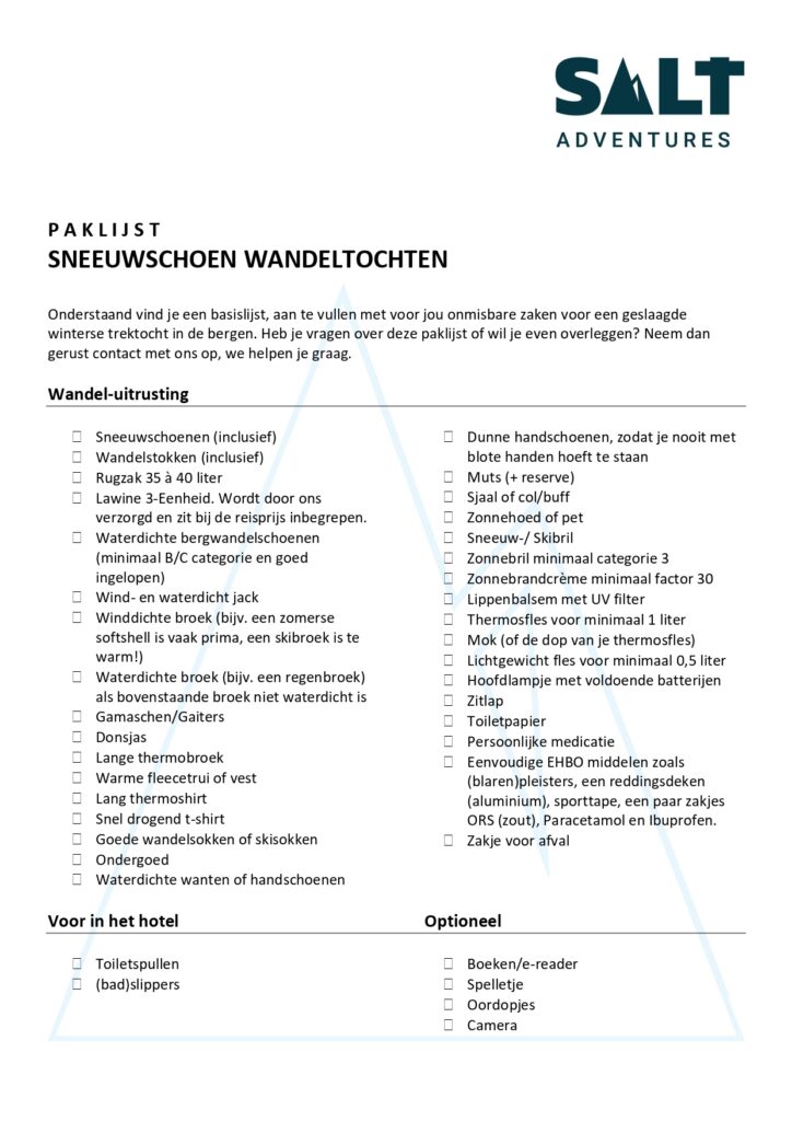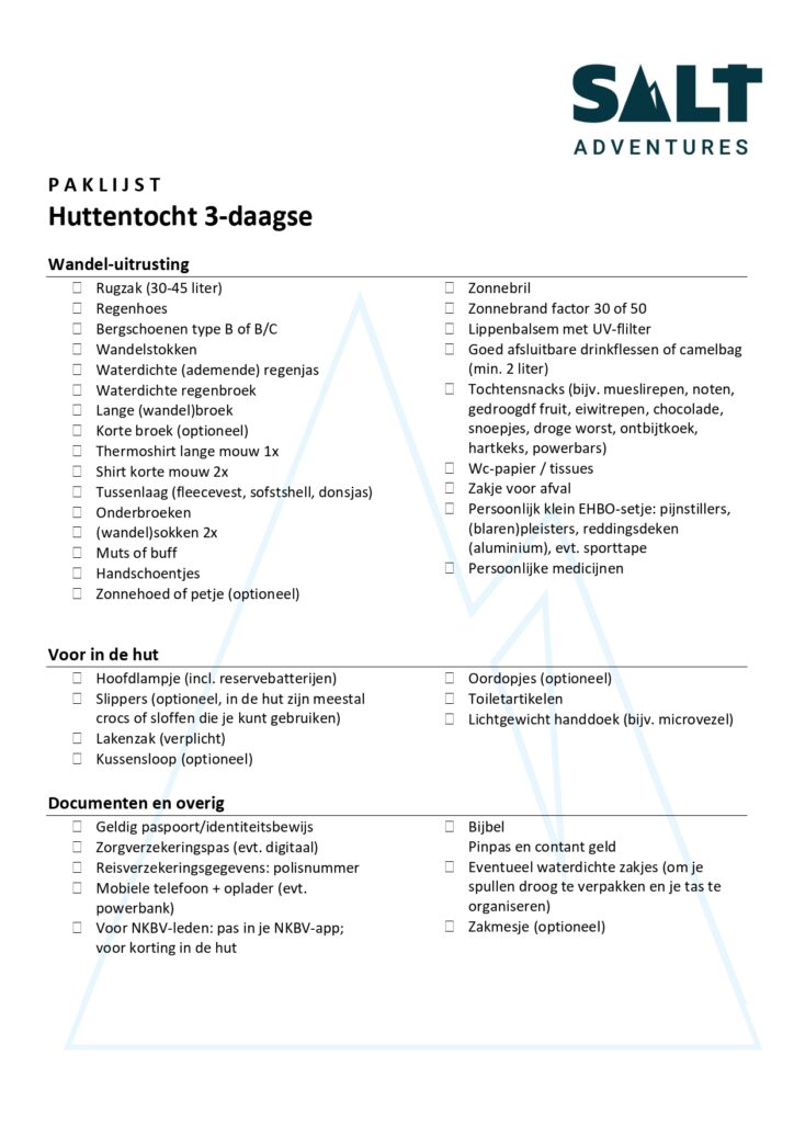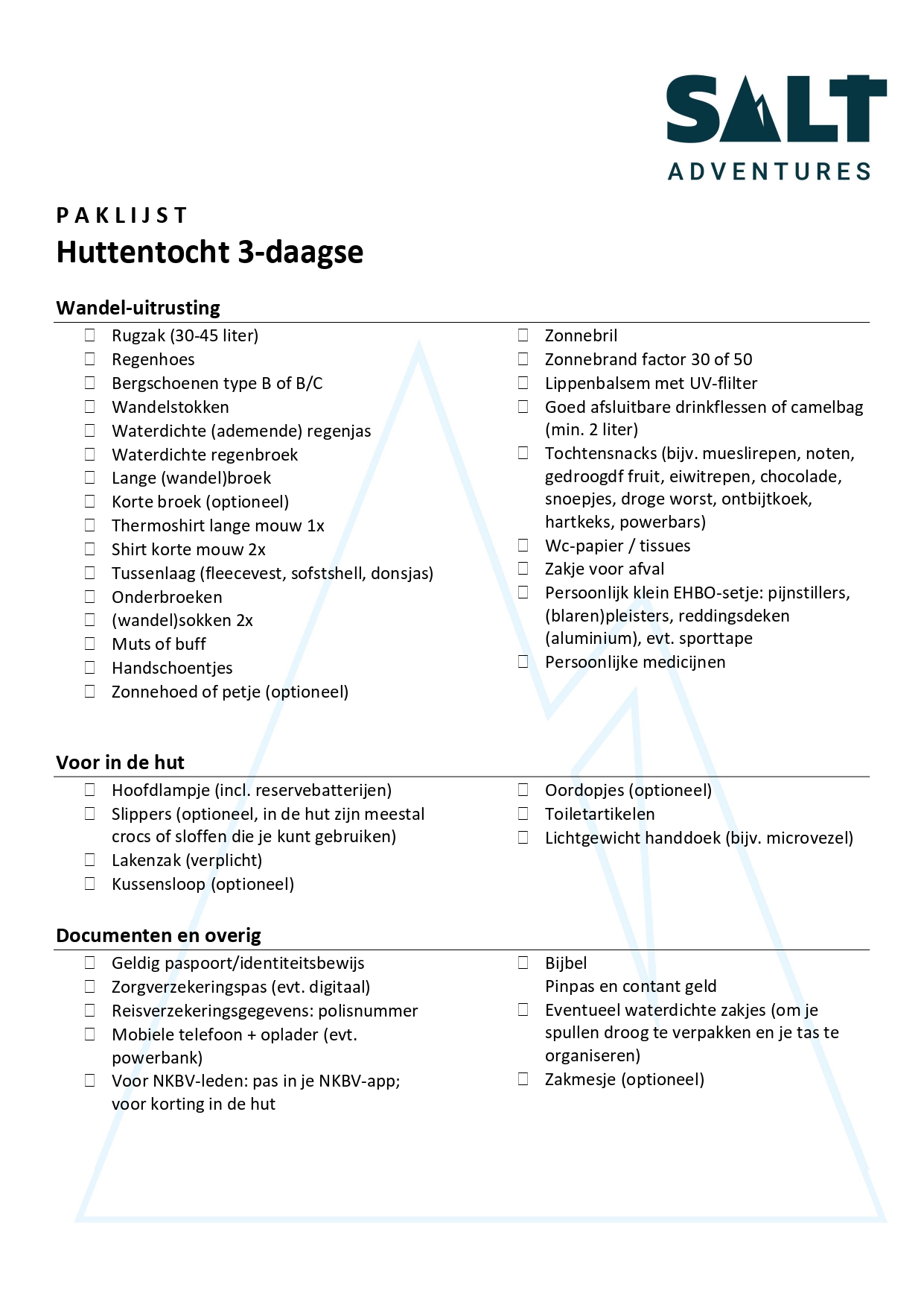 Benieuwd naar wat je allemaal mee moet nemen op een huttentocht of wintersport? Check nu de paklijst voor jouw reis en ga goed voorbereid op pad!